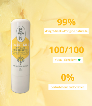 Le Soin des Lèvres Sweet Kiss est un stick à lèvres nourrissant, au miel et aux cires précieuses, qui apporte de la souplesse et répare les lèvres abîmées à tout moment. Il protège les lèvres à lutter contre les agressions extérieures. Un essentiel à la douce odeur fruitée d'abricot et de vanille, à avoir toujours sur soi, été comme hiver !